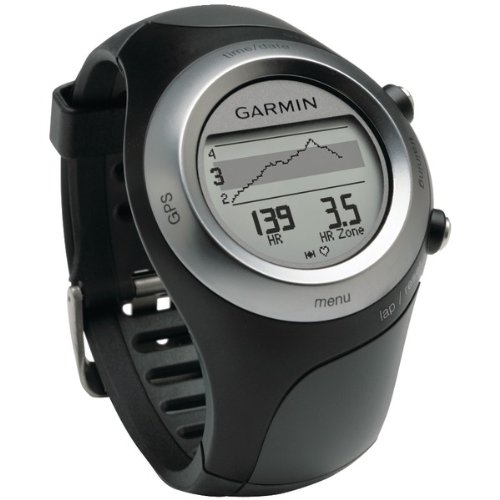 Product Type: GPS watch| Recommended Use: Running| Functions & Services: Distance, speed, time/date| Compatible Software: Garmin Training Center| Antenna: Built-in| Features: Alarm, clock, timer, AutoLap, AutoPause, Virtual Partner, Garmin HotFix, ANT+Sport wireless technology| Type: LCD – monochrome| Resolution: 160 x 100| Waypoints: 100| Routes: 0| Trip Computer: Trip timer, trip distance| Type: Lithium ion| Run Time (Up To): 20 hours| Design Features: Rugged case| Protection: Waterproof