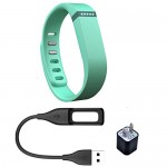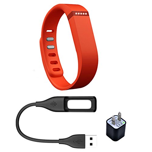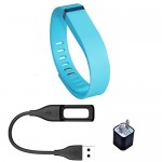 Set 1pc Black 1pc Slate 1pc Red (Tangerine) 1pc Teal 1 pc Blue Replacement Bands with a Clasp a Power Adapter and a Charge Cable without Reset Function for Fitbit FLEX Only