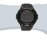 Features protective mineral crystal dial window, world time (48 cities, 31 time zones), auto-calendar, alarms, 1/100-second stopwatch, and buckle closure