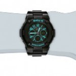 These models accent basic black with splashes of neon pink, yellow, or blue, colors that are popular in today’s street fashions. The matte finish of the bezel combines with the ion plating finish of some parts for plenty of elegance. The faces feature a trio of digital dials that show the day of the week, date, and current second count.