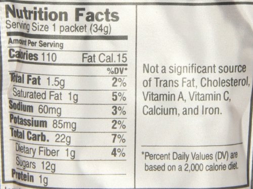 85% complex carbs & 15% simple sugars; 100% daily allowance of Vitamins C & E