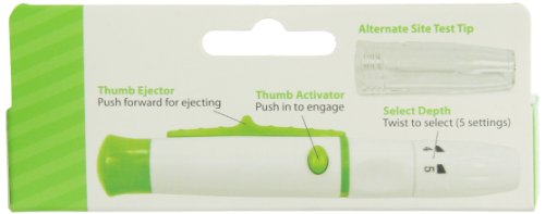 EasyTouch lancing device. Adjustable depth. Ejector button. Vibration control.