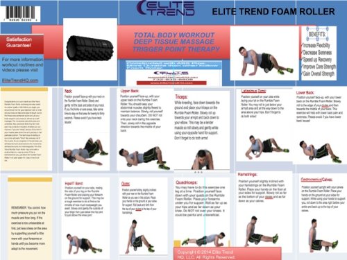 Our Elite Trend Foam Roller will relieve soreness and body aches no matter what the causes are. Whether the soreness comes from exercise, bad posture, sleeping posture, etc. The Elite Trend foam roller contains areas of deep ridges and areas of flat surface. This allows the user to massage both superficial and deep muscle. The roller is designed to increase flexibility, strength and mobility while decreasing soreness and speeding up recovery. It is not only the perfect tool for athletes, but also all who experience soreness at any point in their life. Foam rolling induces myofascial release, which is the treatment of muscle immobility and pain. Use it as a Muscle Roller, Trigger Point Foam Roller, Massage Foam Roller, IT Band Foam Roller, Back Foam Roller, and Whole Body Roller. The release is the loosening of the fascia and the Elite Trend Foam Roller achieves just that.