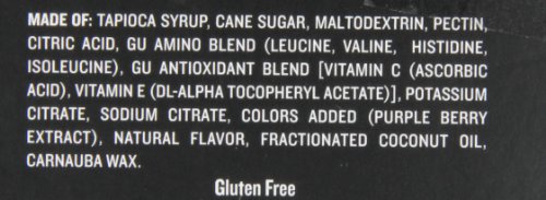 GU Chomps offer a change of pace from the original GU energy gel. The perfectly balanced taste and texture GU Chomps provide the fuel that you need to keep going. GU Chomps utilize GU Energy Gel’s carbohydrates, amino acids, antioxidants and electrolytes in a chewable form. Chomps are the only available energy chew based on the original GU Energy Gel formula. That means an optimized blend of carbohydrates, the patented GU amino blend and a full serving of Vitamin C & E. Amino acids are proven to serve as a fuel source (when taken with carbohydrates), reduce muscle damage, enhance recovery, and delay fatigue. Vitamins C & E are both antioxidants that combat tissue breakdown. Chomps are the energy chew that perform as well as they taste. Chomps can be consumed before, during, and right after activity. A 2-serving packet (8 chews) will provide 180 calories and 60 grams of carbohydrates.