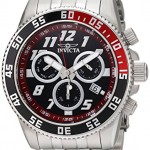 Stainless steel case with a stainless steel bracelet. Uni-directional rotating black topring bezel. Black dial with luminous silver-tone hands and Arabic numeral hour markers. Minute markers around the outer rim. Dial Type: Analog. Luminescent hands and markers. Date display at the 4 o’clock position. Day displayed at the 9 o’clock position.. Chronograph – two sub-dials displaying: 60 second and 30 minute. Day of week sub-dial at the 6 o’clock position. Quartz movement. Scratch resistant flame fusion crystal. Screw down crown. Solid case back. Case diameter: 50 mm. Case thickness: 14 mm. Round case shape. Band width: 24 mm. Band length: 8.75 inches. Fold over clasp with safety release. Water resistant at 300 meters / 1000 feet. Functions: chronograph, date, day, hour, minute, second. Casual watch style. Invicta Subaqua Chronograph Black Dial Stainless Steel Mens Watch 14509.
