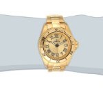 Gold dial with black, red and white hands and black and white roman numerals; luminous; unidirectional 18k gold ion-plated stainless steel bezel