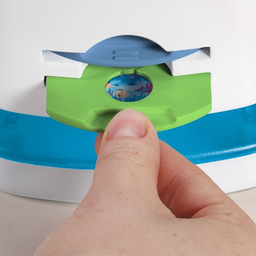 The easy-to-use projection system includes three image cartridges with comforting, dreamy scenes. The lens pivots to project the images onto a wall or ceiling for ideal viewing by baby.