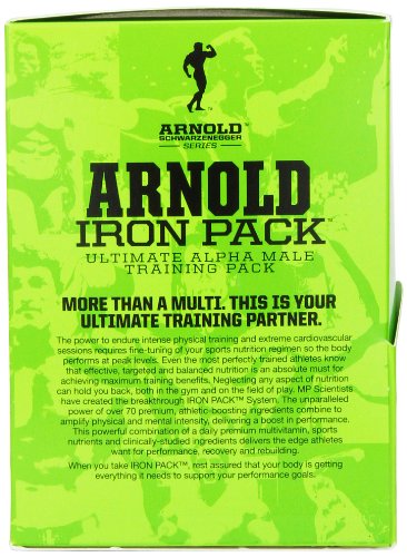 Arnold Schwarzenegger series iron pack performance multi-nutrient formulated for the active male. Foundation of your training regimen. Supports muscle building and recover. Bone and joint support.