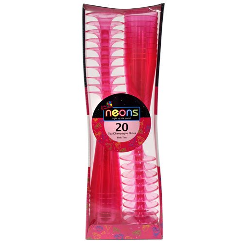 Party Dimensions Neon Pink 5oz Plastic Champagne Flute, 20 Flutes. Hard Plastic. Designed for all occasions, banquets, parties, upscale catering, and home. Disposable.