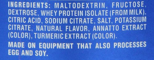 PowerBar Recovery Sports Drink Mix contains milk and is made on equipment that also processes egg and soy. If you are allergic to any of these ingredients, this product is not for you. We encourage you to read the label for the most up to date list of all ingredients.