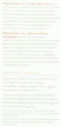 A robust and full-flavored black tea blended with our traditional Indian Masala spices with full notes of cardamom, ginger, and clove that are zesty and stimulating. Masala Chai should be brewed strong and served sweet with steamed milk and sugar.