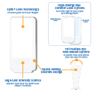 - Discreet, compact design – 13.5”(H) x 6.25”(W) x 2.12”(D)