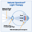 The broader-spectrum light from Verilux energy lamps stimulates all of the eye’s photoreceptors. One photoreceptor, melanopsin, helps set the body’s daily cycles and is triggered by a specific narrow spectrum of natural light. Most artificial light sources do not provide light in the range to most efficiently stimulate melanopsin. Verilux energy lamps emulate key spectrums of natural light to effectively set the body’s internal clock to improve mood, energy, and well-being.