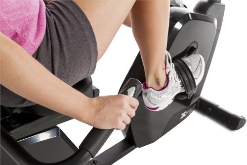 XTERRA SB2.5r Walk-Thru Recumbent Bike The XTERRA SB2.5r walk-thru recumbent bike is ideal for all users looking to lose weight, tone up or stay in shape. It’s easy to get in and out, and the densely padded molded foam seat will give you comfort and support. The reliable poly v-belt along with the 22lb flywheel system is smooth and quiet and with 24 resistance levels you can challenge yourself as you reach your fitness goals. A large, easy to read dual color backlit LCD display also incorporates speakers for your MP3 player. Features • Convenient walk-thru design • Smooth and quiet poly v-belt • 22lb heavy duty flywheel system offers premium fluid motion • Oversized, self leveling pedals • 3-Piece quality pedal crank • Comfortably molded seat bottom and large back pad • Seat adjustments – fore/aft • 24 programs including 2 heart rate programs, 1 body fat program, 4 user-defined programs and a manual program • Built in heart rate receiver works with chest strap (not included) for optimal conditioning • Large 5-Inch x 2.5-Inch dual color backlit LCD display is easy to read • Audio jack and speakers for MP3 player built into the console • Hand grip pulse sensors (monitor your heart rate) are conveniently mounted on the handlebars to keep your workouts safe and effective • 24 levels of resistance provide a variety of exercise options for all fitness levels • Magnetic resistance system is friction-free for smooth, quiet, and maintenance-free operation • Front transport wheels for moving your equipment • Rear spin out levelers correctly balance the recumbent bike on most floors • Heavy-duty steel frame • 110v plug-in required • Weight limit: 300 lbs • Assembled dimensions – LWH: 54.3-Inch x 25.2-Inch x 43.7-Inch • Assembled weight: 132 lbs • Warranty: • 5 years frame • 1 year parts